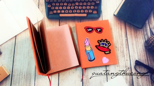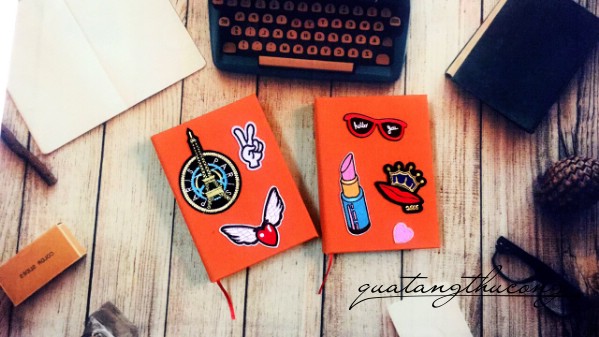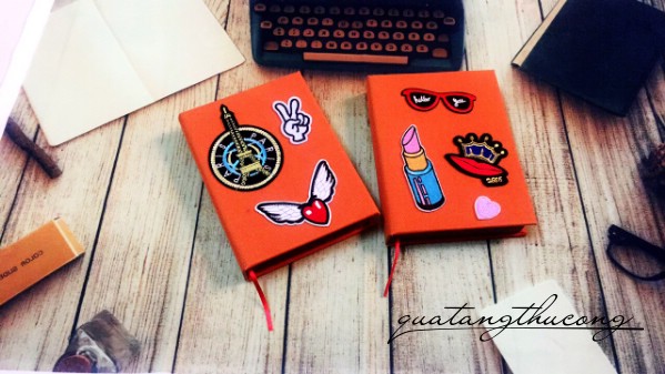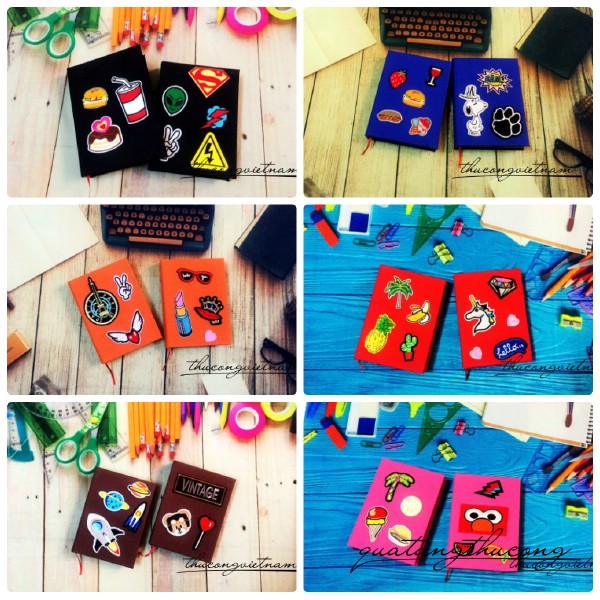 Sổ bọc vải với nhiều màu sắc khác nhau, sau đó được patch ủi thêm nhiều họa tiết xinh xắn.