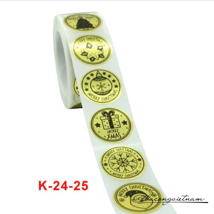 Sticker tròn Giáng Sinh nhũ ánh kim (500 tem)- Xmas