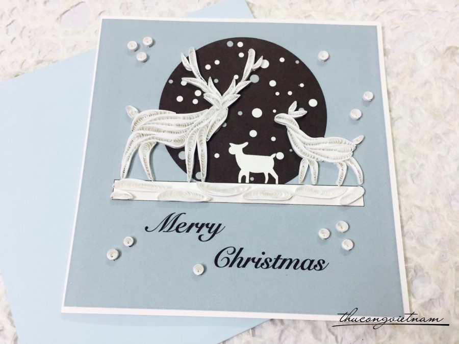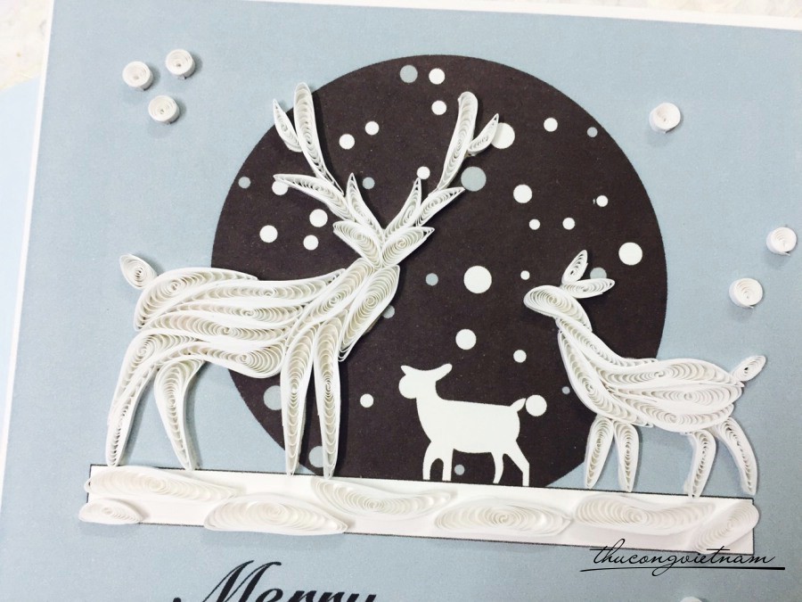 Thiệp Quilling Giáng Sinh - Hươu Tuyết