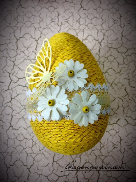 Trứng vàng được trang trí bướm, ruy băng và hoa